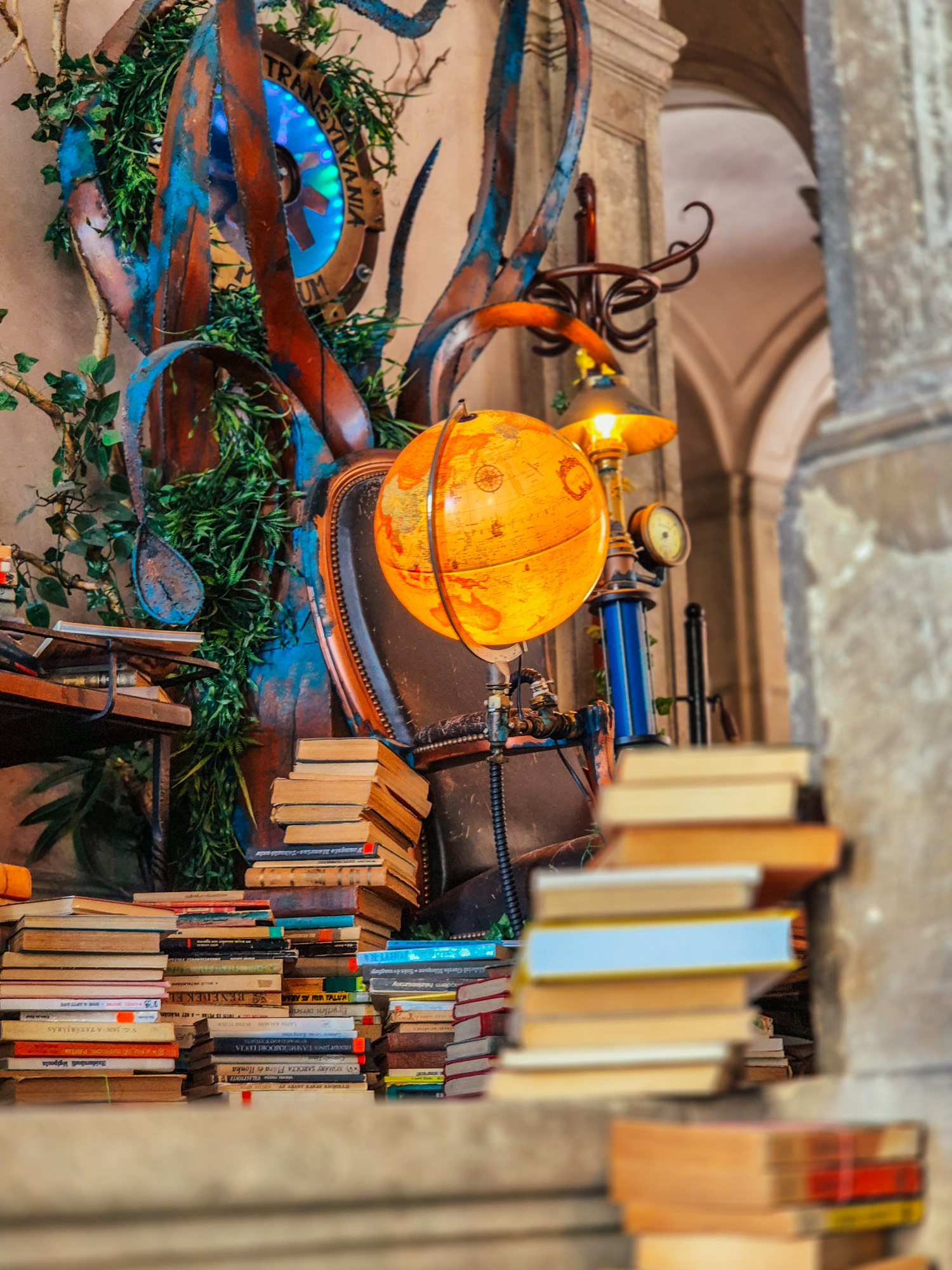 ✨ Amenajat de Steampunk Transylvania, acest spațiu special aduce împreună magia cărților, imaginația decorului vintage-futurist și farmecul baroc al muzeului, oferindu-ți o experiență de lectură ca niciodată până acum. Este o invitație de a evada din cotidian și de a păși într-un univers unde Jules Verne ar fi fost, cu siguranță, un oaspete de onoare.