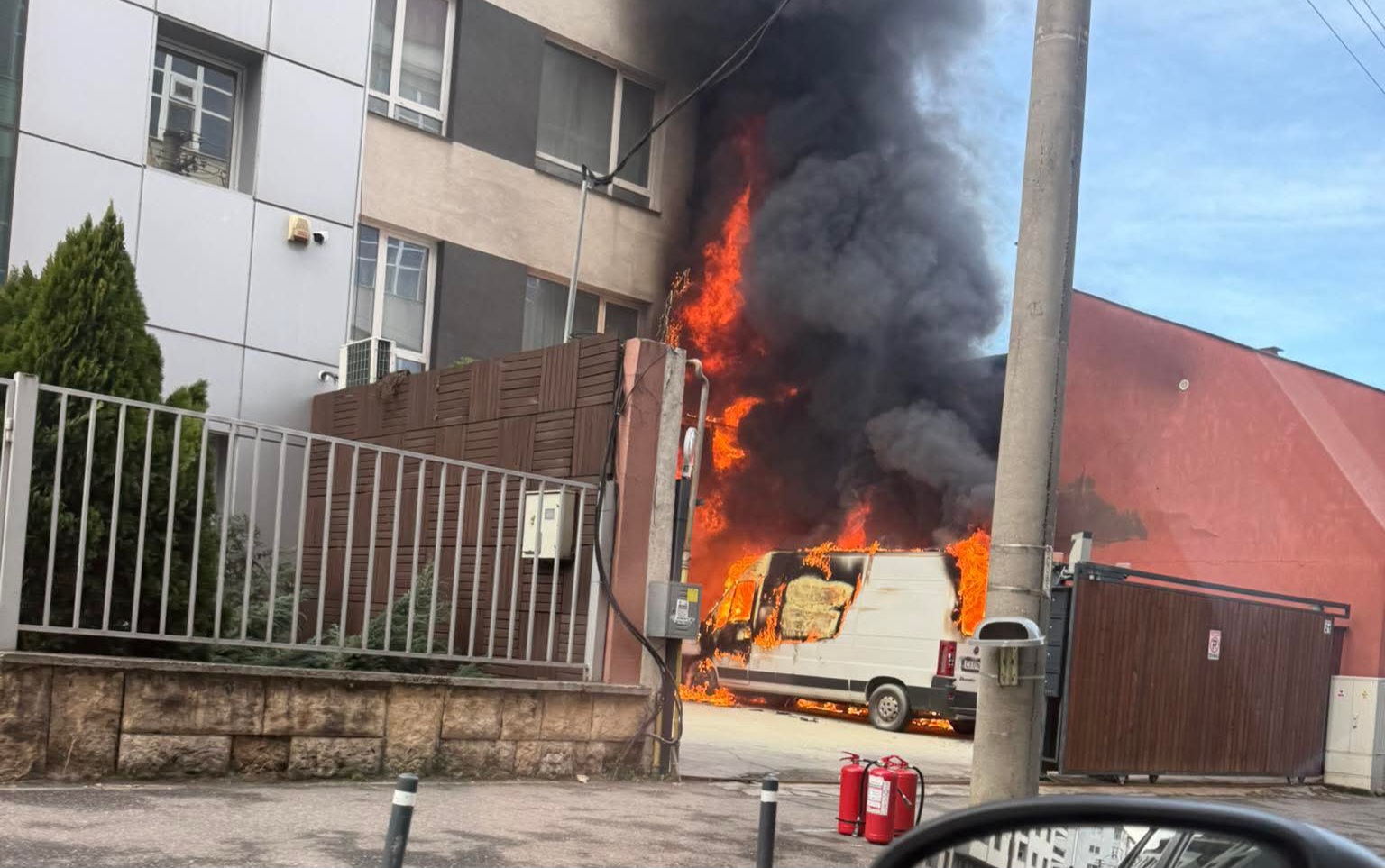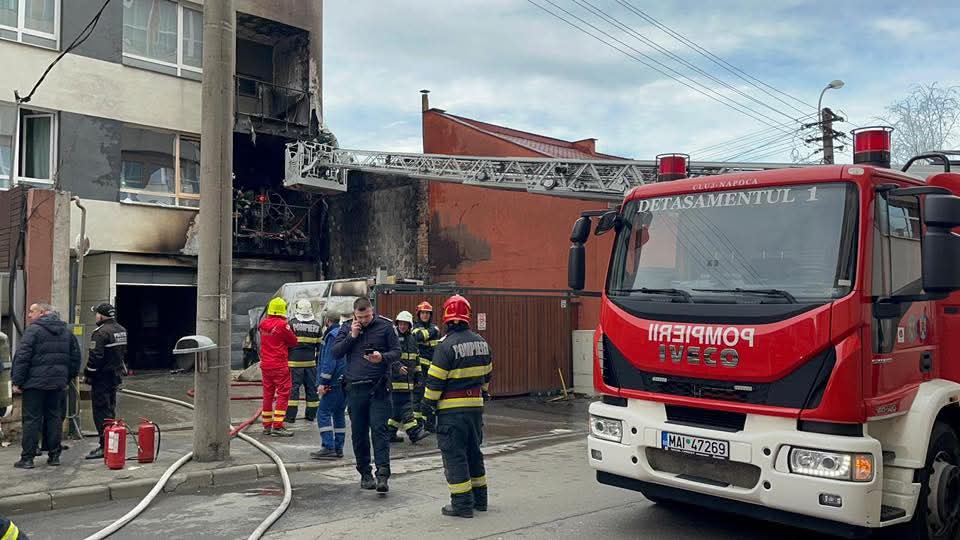 Incendiu puternic pe strada Henri Barbusse din Cluj-Napoca: o autoutilitară și fațada unui bloc au fost cuprinse de flăcări