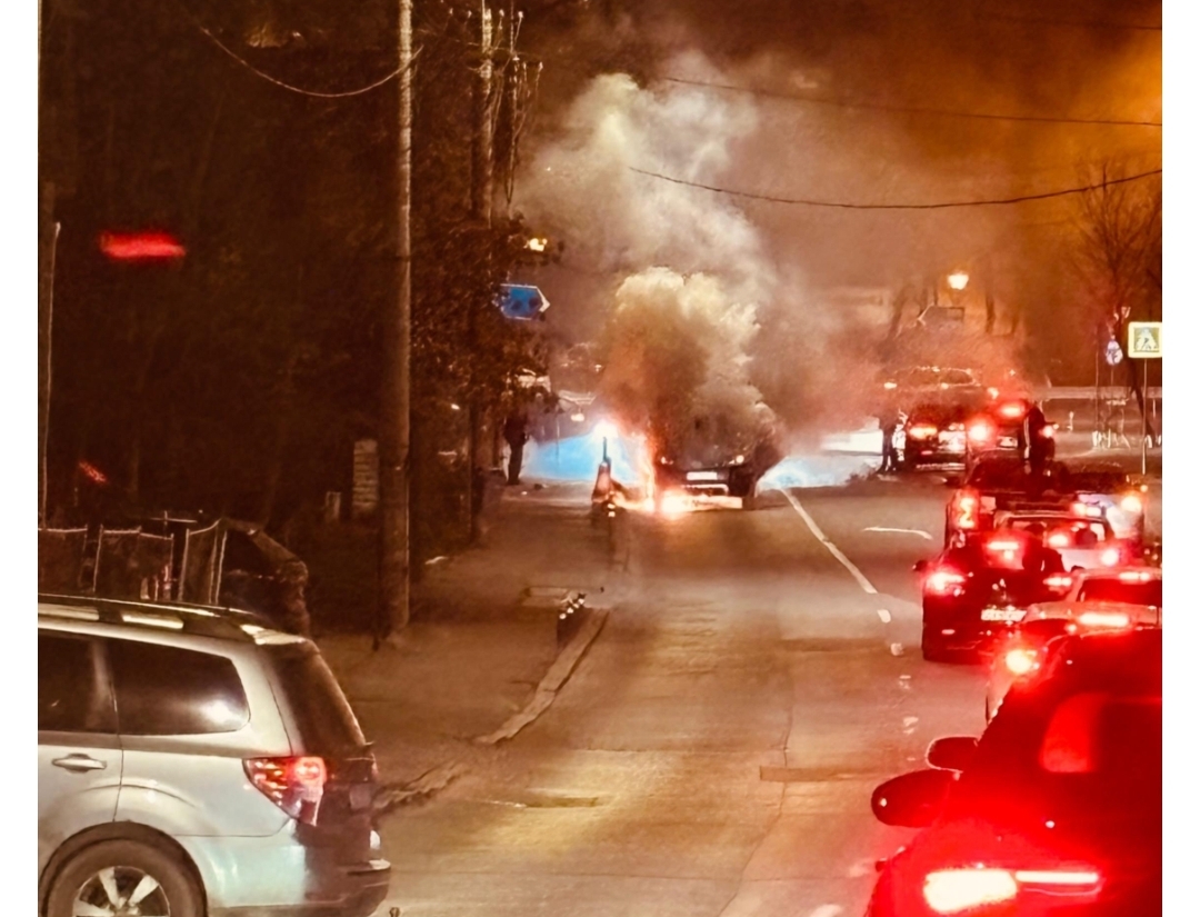 Mașină cuprinsă de flăcări pe Tăietura Turcului. Nu se cunosc încă detalii