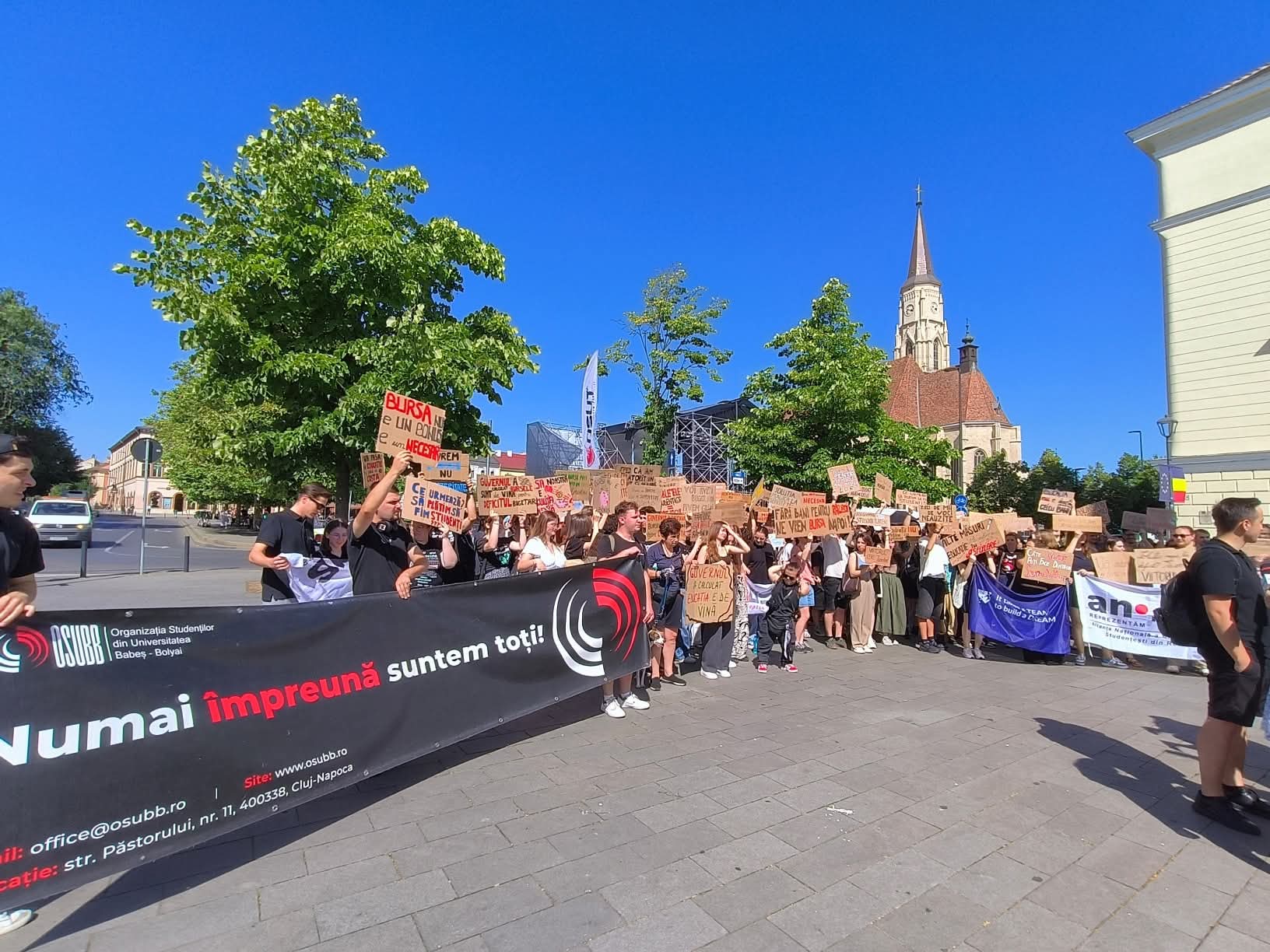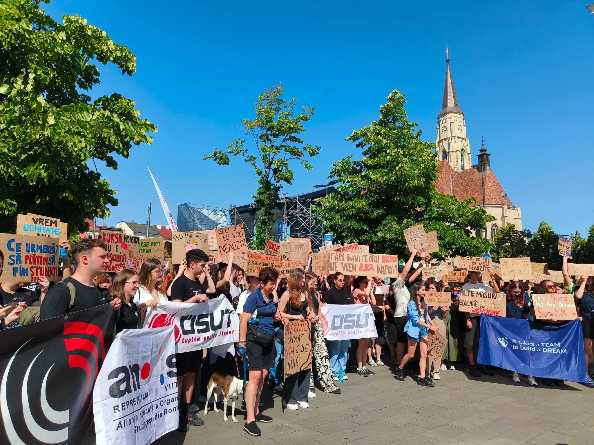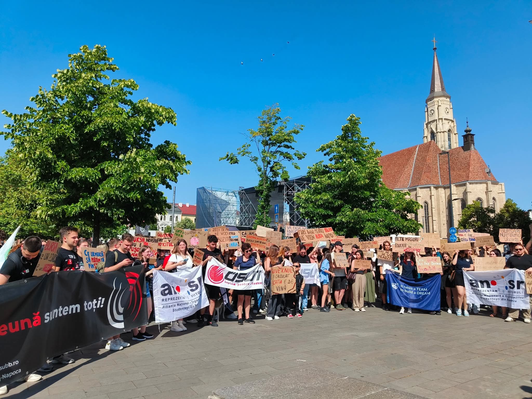 Studenții din Cluj-Napoca protestează împotriva măsurilor de austeritate: „Reducerea burselor ne lovește direct”