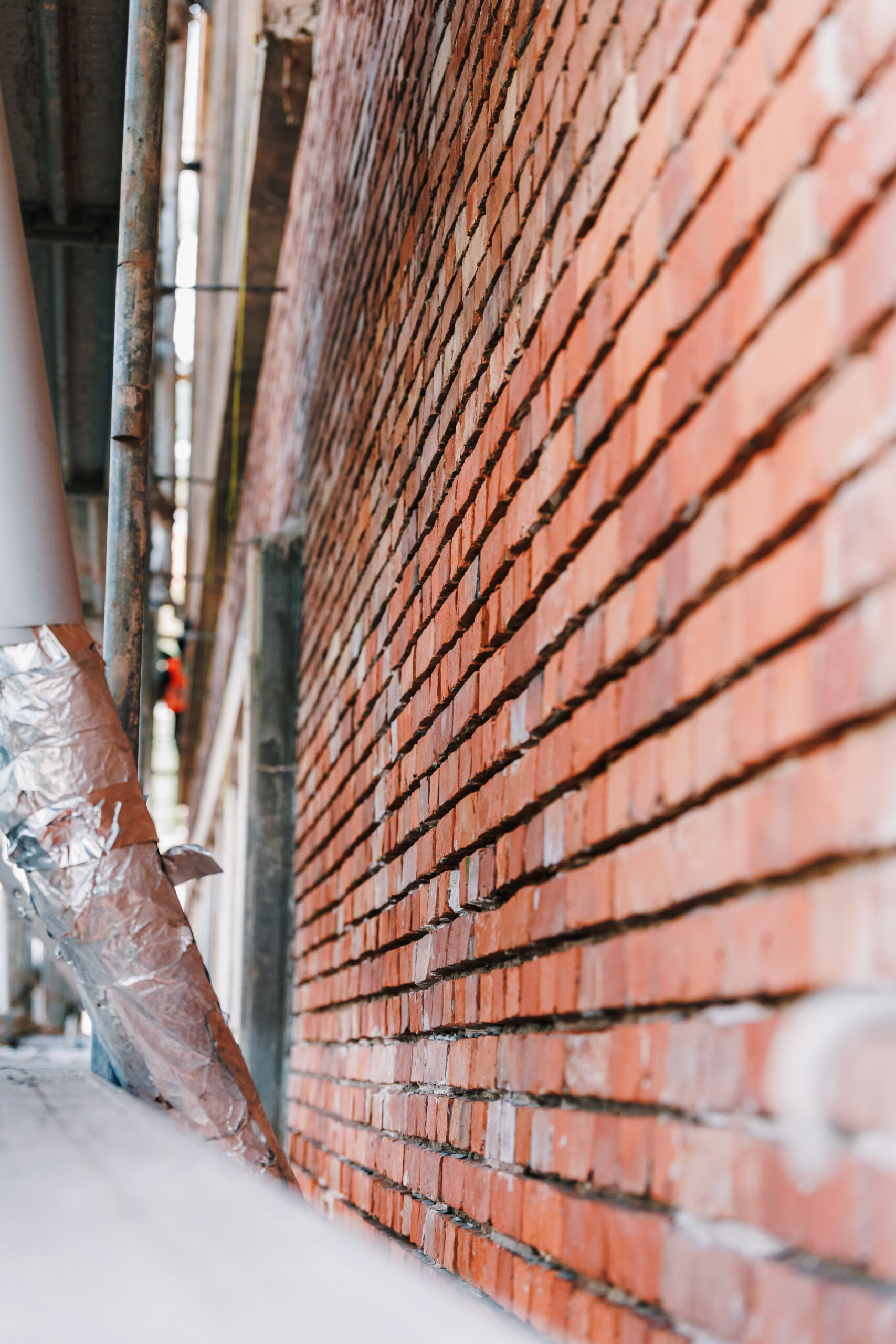 Reabilitarea clădirii din cărămidă roșie a avut la bază și un principiu clar de sustenabilitate: recuperarea și reutilizarea materialelor originale. Cărămida inițială a fost demontată, curățată și refolosită în restaurarea fațadelor, păstrând astfel autenticitatea vizuală a construcției. Această abordare continuă, simbolic, istoria clădirii, întrucât și la momentul construirii sale, materialele proveneau parțial din clădiri afectate în timpul celui de-al Doilea Război Mondial, o practică frecventă în epoca respectivă.
