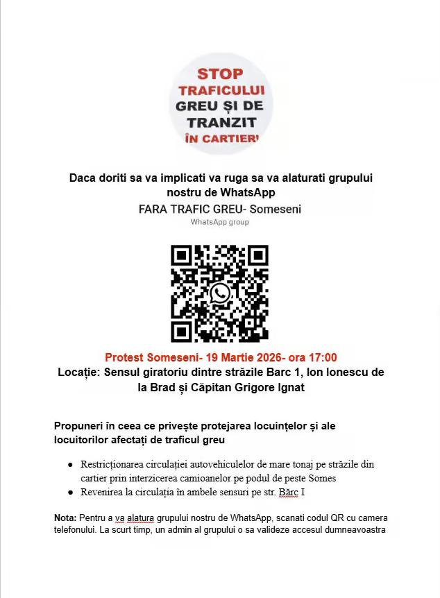Disperare în Cluj-Napoca: Nou protest anunțat în Someșeni pentru scoaterea traficului greu
